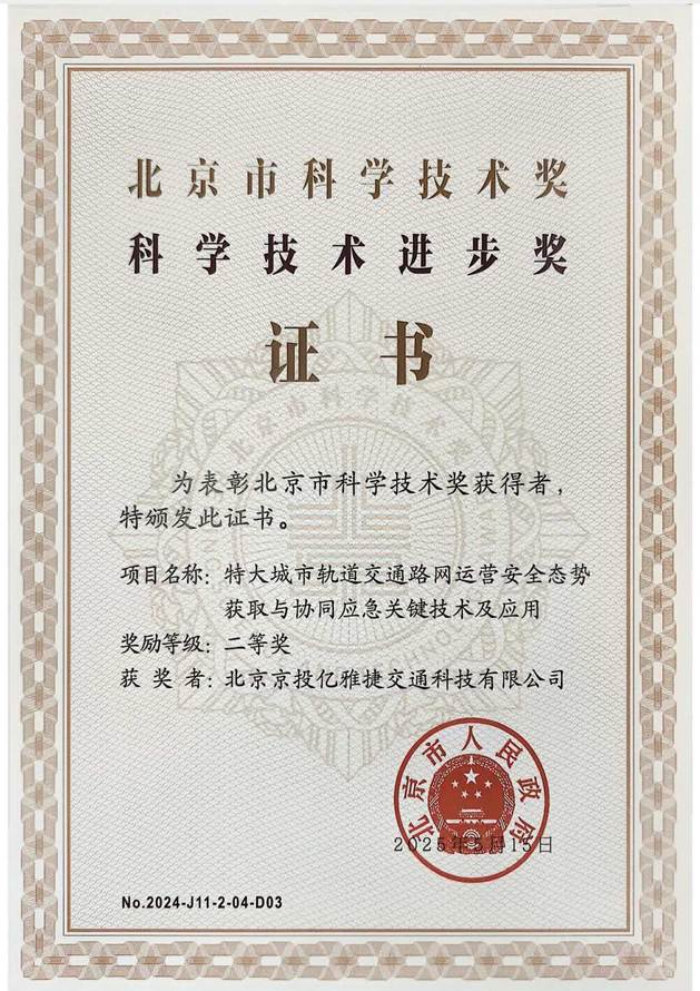 近期,北京市科学技术奖获奖名单正式揭晓,由美高梅美高参与申报的“特大城市轨道交通路网运营安全态势获取与协同应急关键技术及应用”项目荣膺二等奖,该奖项是国内城轨交通领域的权威科技荣誉。此次获奖,标志着公司在关键技术创新与实战应用上取得了政府与行业的高度认可。